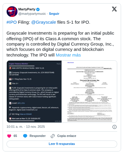 Grayscale presenta IPO y marca un hito para los gestores de criptoactivos