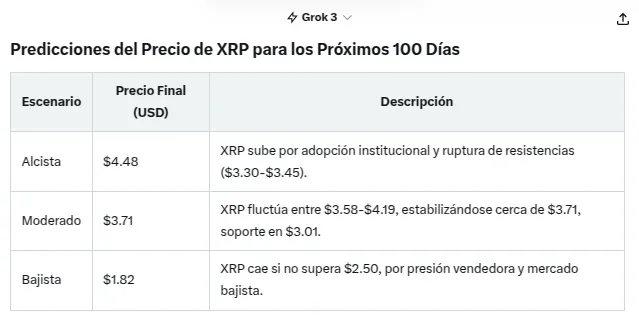 La inteligencia artificial Grok, integrada en la plataforma X y asociada a Elon Musk, ha captado nuevamente la atención del ecosistema cripto. Su más reciente pronóstico sobre la evolución del precio de XRP en los próximos 100 días ha encendido discusiones entre traders y analistas.