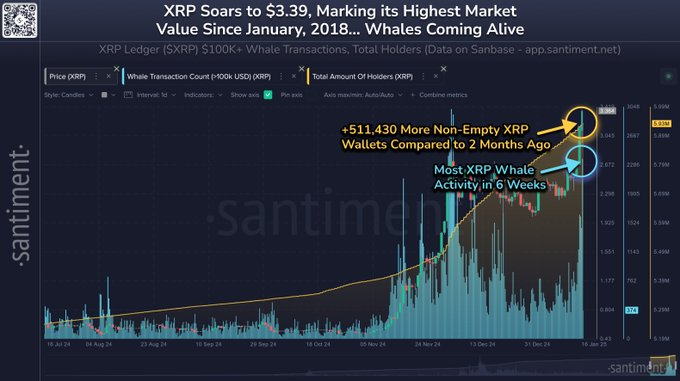 El ecosistema Ripple ha experimentado una nueva jornada idílica. Su token nativo, XRP, registró un nuevo máximo histórico, superando el hito anterior alcanzado en enero de 2018.