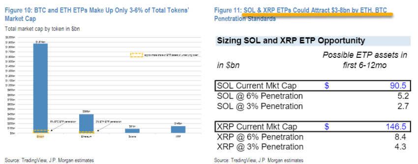 JPMorgan comparte proyecciones sobre hipotéticas aprobaciones de ETP de Solana y XRP