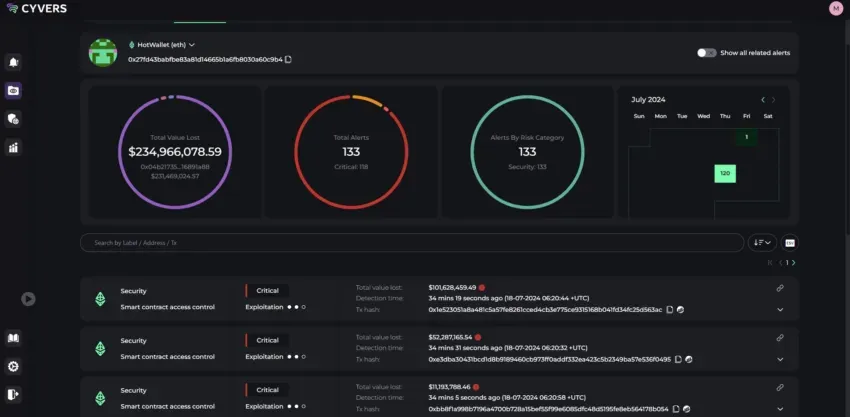 El exchange indio de criptomonedas WazirX está bajo escrutinio tras una transacción de 234,9 millones de dólares a un monedero desconocido. La empresa de seguridad blockchain Cyvers detectó por primera vez esta transacción, que se originó en el monedero Safe Multisig de WazirX en la red Ethereum.