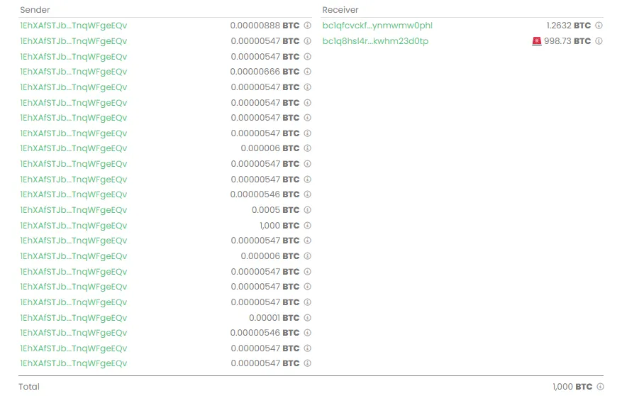 Un monedero Bitcoin ha resurgido después de casi 12 años de inactividad, moviendo 1,000 BTC valorados en más de 60 millones de dólares a precios actuales.