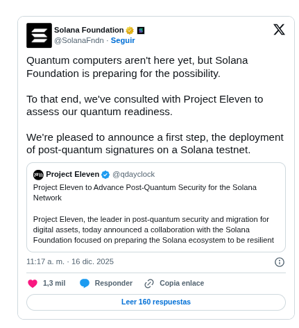 La computación cuántica se ha convertido en un tema central tras la alianza entre la Solana Foundation y Project Eleven. La colaboración busca preparar al ecosistema de Solana frente a un desafío que muchas blockchains reconocen, pero pocas han probado de forma práctica: ¿Cómo asegurar los activos digitales cuando los ordenadores cuánticos sean capaces de romper la criptografía actual?