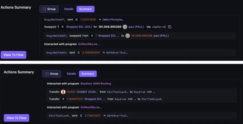 Transacciones en la red Solana que interactuaron con el programa malicioso. Fuente: X/@JupiterExchange