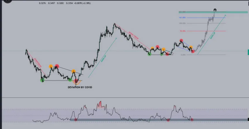 Análisis histórico del precio de Cardano. Fuente: Yesreel en X.