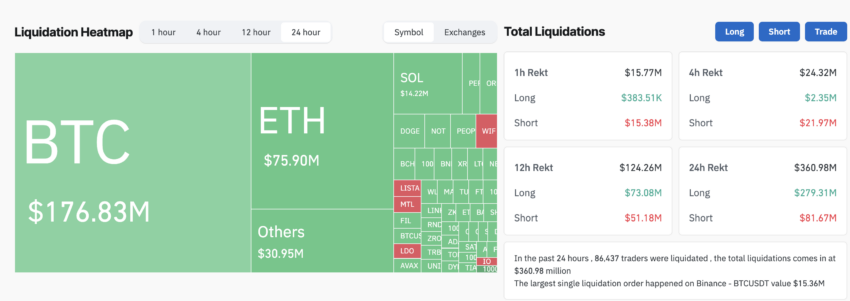 Liquidaciones del mercado cripto. Fuente: Coinglass