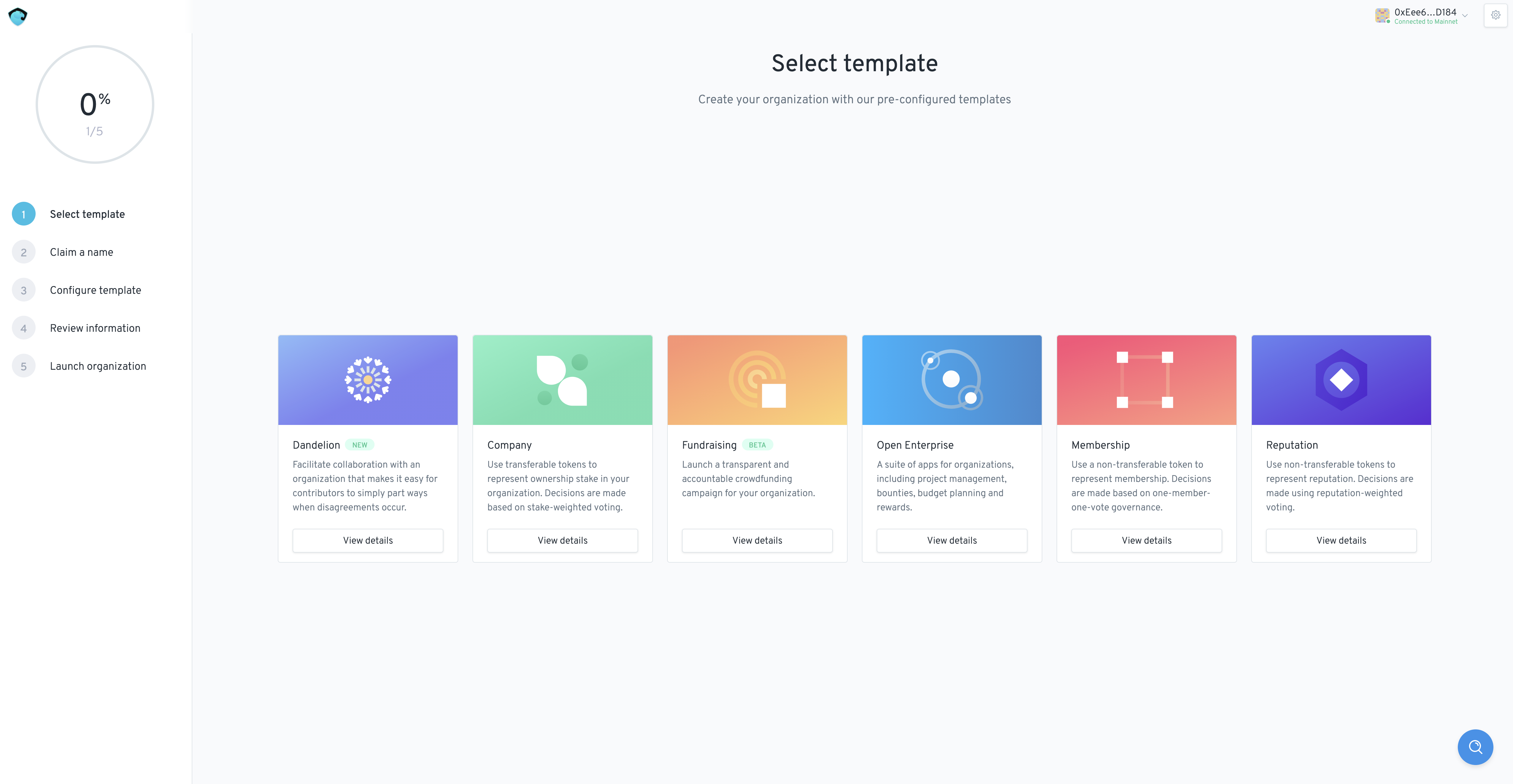 Aragon proporciona una interfaz fácil para el consumidor y un marco para el desarrollador para que la gente cree y gestione sus propias organizaciones. Todo ello gracias a las smart contracts. Para crear una DAO Aragon cuenta con una serie de plantillas dependiendo del tipo de organización que el usuario desee crear.