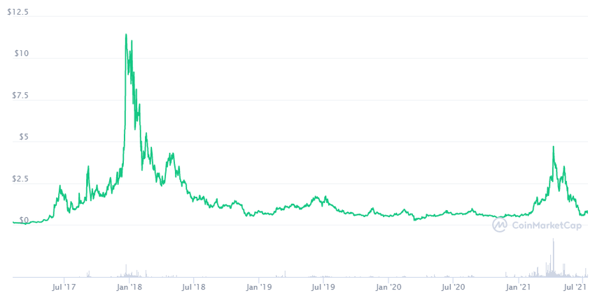 Con una capitalización de mercado actual de 87,8 millones de dólares, el token KMD nativo de Komodo cotiza a 0,69 dólares durante el cierre de esta edición. Su precio ATH se produjo el 22 de diciembre de 2017 a 11,44 dólares.