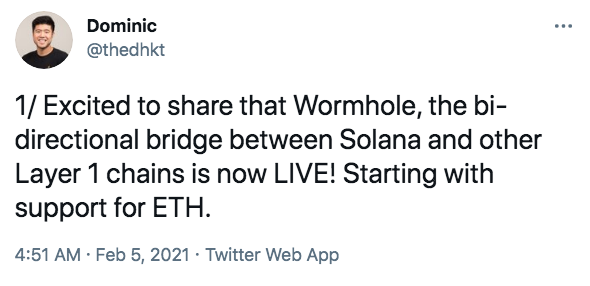 La interoperabilidad con los ecosistemas existentes también es algo de vital importancia, ya que a día de hoy Ethereum es donde se construye la mayoría de proyectos del ecosistema Defi. Desde Febrero de 2021 la red de Solana cuenta con Wormhole, un puente bidireccional entre Solana y otras blockchain, entre ellas la de Ethereum.