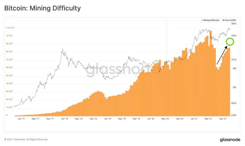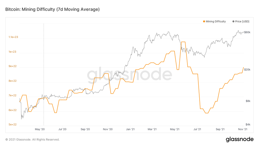 Además, el aumento de la dificultad ha ido de la mano de un aumento del hashrate.
