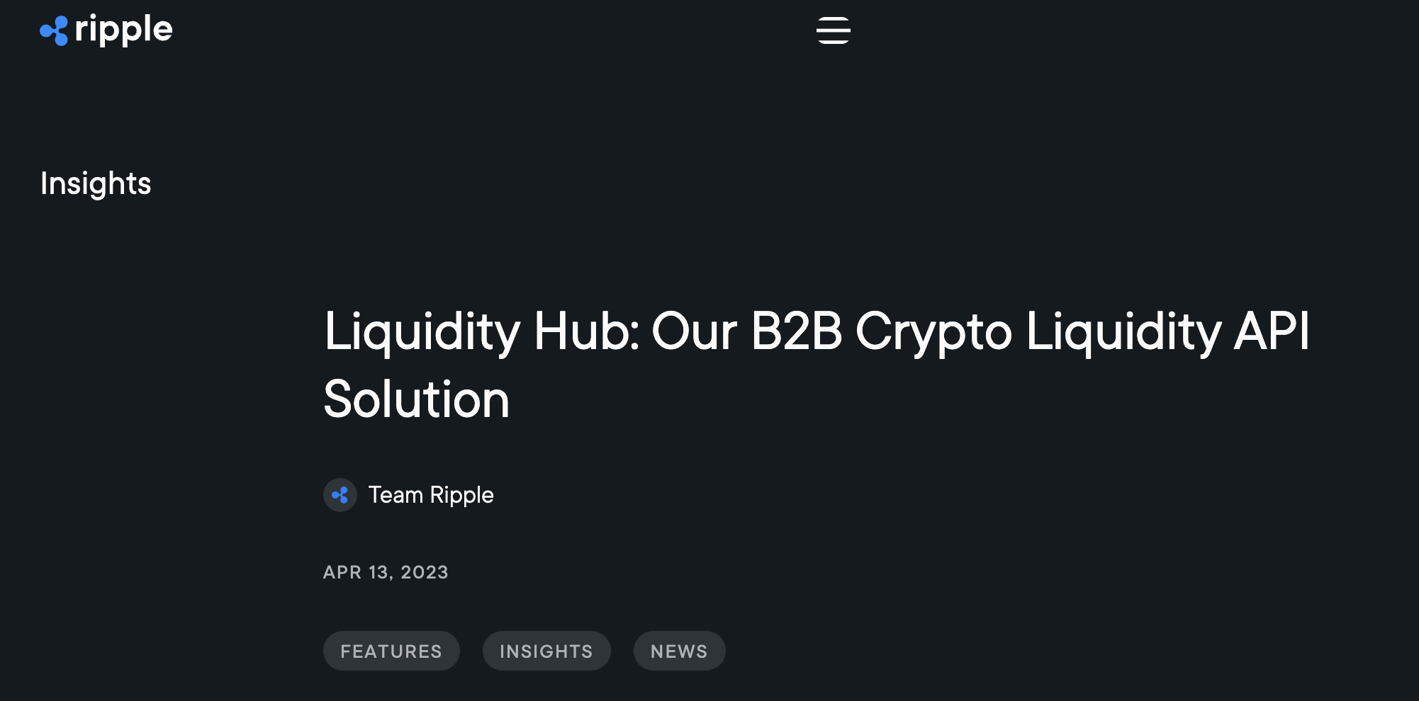 El 13 de abril, Ripple anunció el lanzamiento de Liquidity Hub, un nuevo servicio para empresas. El sistema se lanzó como piloto en 2022, y ahora la versión pública completa está disponible.