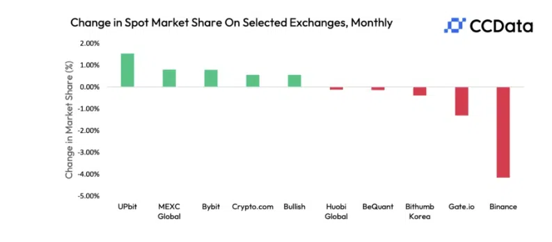 Aunque desde entonces esta cifra ha caído al 51%, la participación de mercado del exchange sigue siendo sustancial. Sin embargo, su variación mensual en la participación en el mercado spot fue la que más cayó entre sus competidores en septiembre.