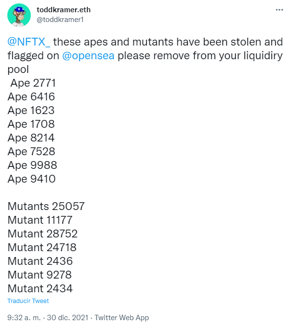 Se han robado un total de 15 simios y mutantes. El propietario de los NFT, Todd Kramer, calificó el incidente como “posiblemente la peor noche de su vida” y tenía la esperanza de que se solucionara. Esta es la primera vez que se roban NFT de una colección importante en los últimos tiempos y genera algunas preocupaciones sobre la seguridad.