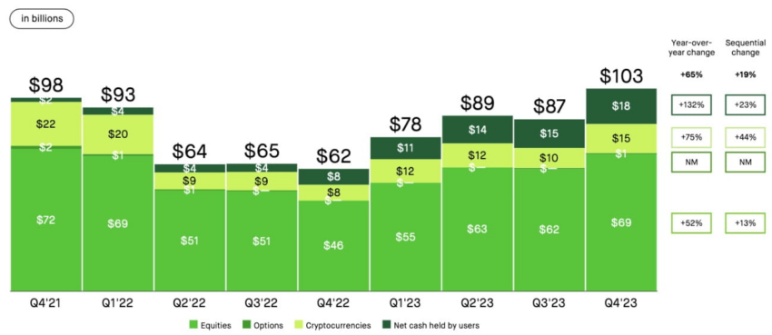 Sponsored SponsoredEn el último trimestre de 2023, incluso antes de que se aprobaran los ETF de Bitcoin, Robinhood comenzó a ver un aumento en los criptoactivos bajo custodia.