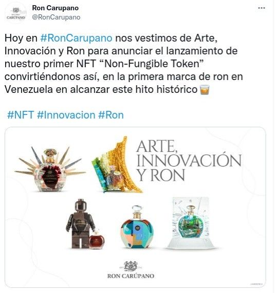 El día de ayer, 26 de agosto de 2021, la empresa productora del que es considerado el mejor ron del mundo (Ron Carúpano Legendario) anunció a través de su página web oficial el lanzamiento de su colección NFT.