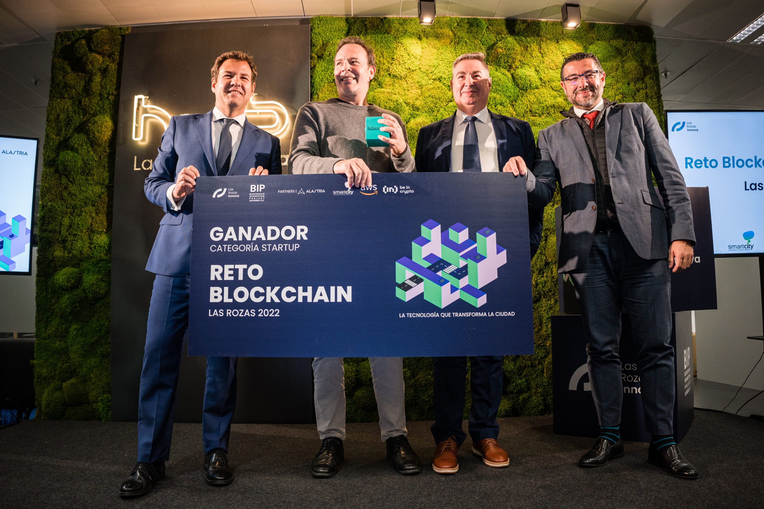 El primer proyecto ganador de “Premios BIP (Blockchain Interesting Project) Las Rozas 2022” fue la startup “Techos que alimentan”, por ofrecer una solución sostenible con impacto social, gestionada con blockchain y funciona a través de una app inclusiva que incluyó transacciones digitales por tokens en forma de monederos y monedas que funcionan en entornos sociales. Fue premiado con 10,000 euros.