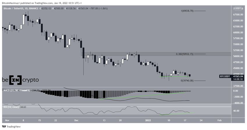 Después de un breve repunte, BTC creó un mínimo ligeramente más bajo el 19 de enero. Esto sirvió para validar el área de 41,200 dólares como soporte menor.