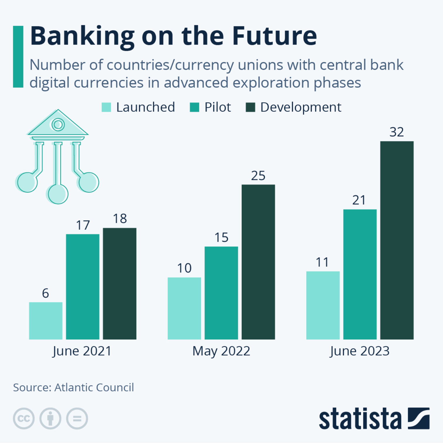 A escala mundial, la carrera por desarrollar los CBDC se acelera. Grandes economías como China e India están avanzando en sus proyectos de moneda digital. Esta tendencia desafía el dominio tradicional de las monedas fiduciarias, como el dólar estadounidense.