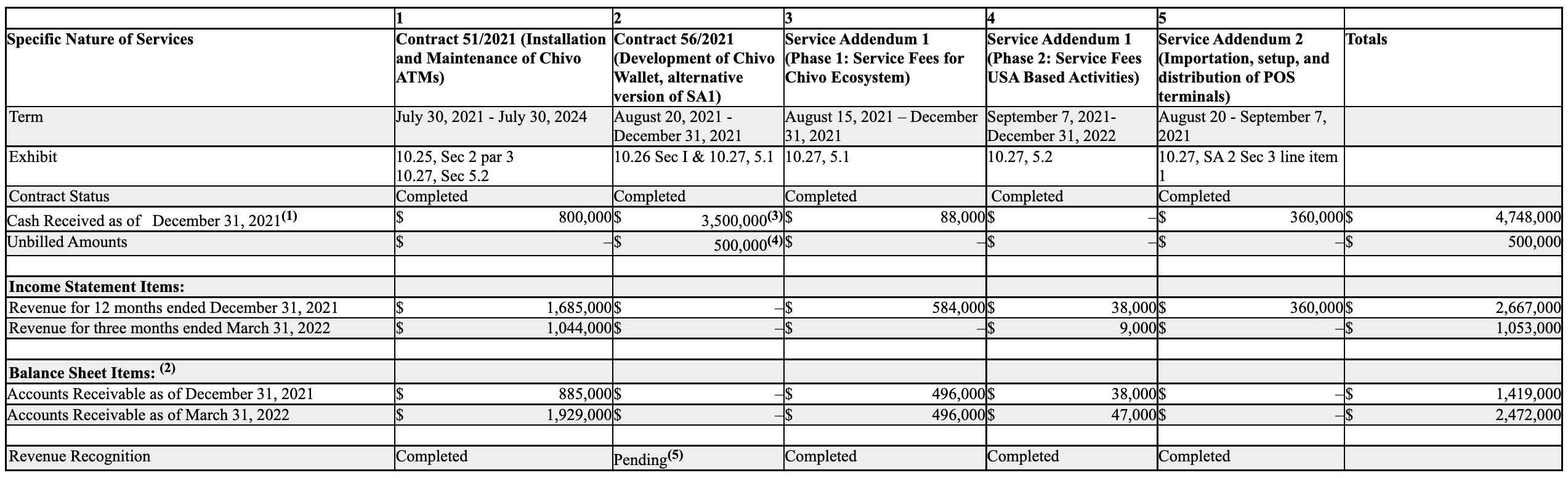 Sponsored“La empresa tiene dos fuentes de ingresos relacionadas con los cajeros automáticos Chivo, una tarifa de instalación de $339,000 y una tarifa adicional de $1,412.50 por mes para el mantenimiento y servicio continuo del equipo. Cada cajero automático individual es distinto y se puede identificar por separado. Por lo tanto, el pago único por la instalación de 200 cajeros automáticos en el territorio nacional de El Salvador ($339.000) se considera una obligación de desempeño distinta. Se espera que los costos para cumplir con los servicios de cajero automático se mantengan nivelados en $705,000 por trimestre”.