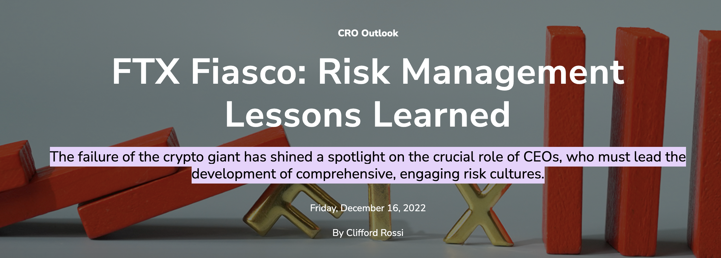 Un artículo escrito para la Asociación Global de Profesionales del Riesgo sugiere que la admisión de SBF del fracaso. Sería la gestión de riesgos era poco común entre los líderes de empresas fallidas. Sin embargo, argumentó que el fracaso de la bolsa se debió en parte a la arrogancia de un equipo de liderazgo. Estuvo encabezado por un director ejecutivo que no rendía cuentas y era “deficiente en riesgos”.