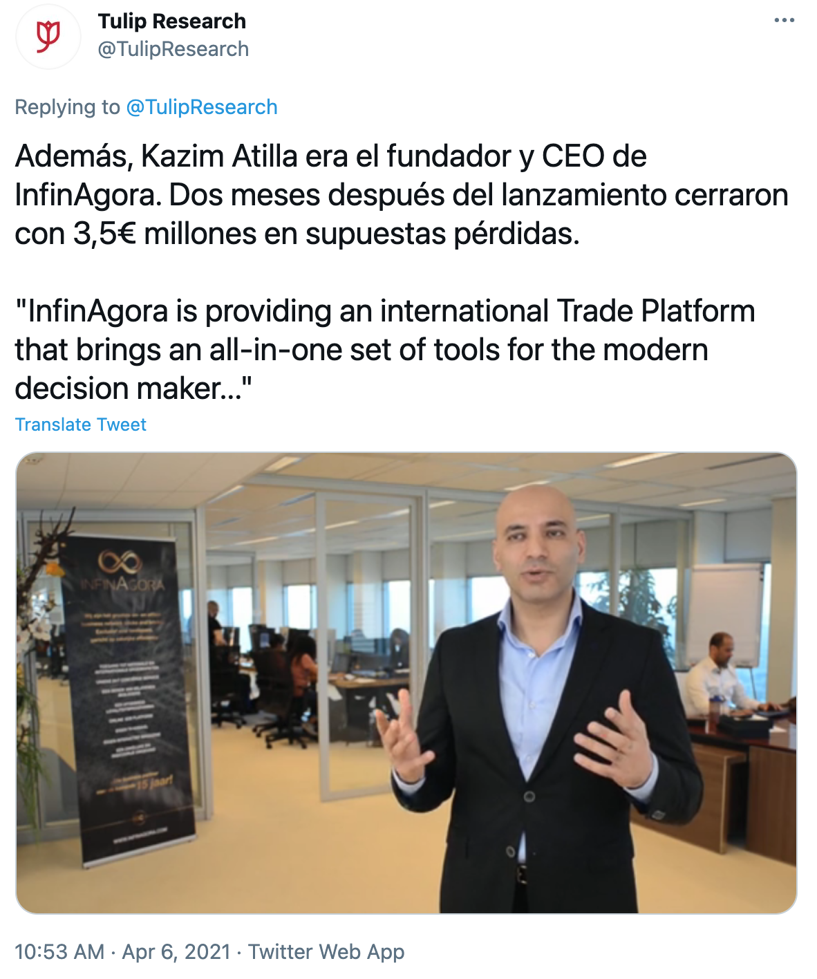 Aparte del hecho de que su nombre haya sido menciona por la SEC en un caso de un esquema ponzi, Atilla tuvo un episodio público en una empresa que quería revolucionar el mercado de los bienes raíces. El empresario turco fue fundador y CEO de InfinAgora, esta empresa quemó varios millones de euros en tan sólo dos meses.