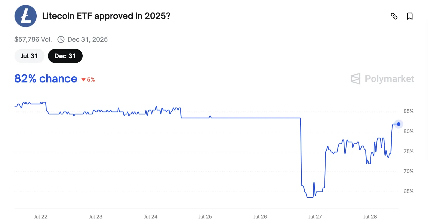 El optimismo de la comunidad sobre la aprobación futura sigue siendo alto, especialmente porque la SEC está considerando activamente procesos de solicitud simplificados. A pesar del revés de hoy con el ETF de Litecoin, las probabilidades de aprobación de Polymarket siguen siendo altas.