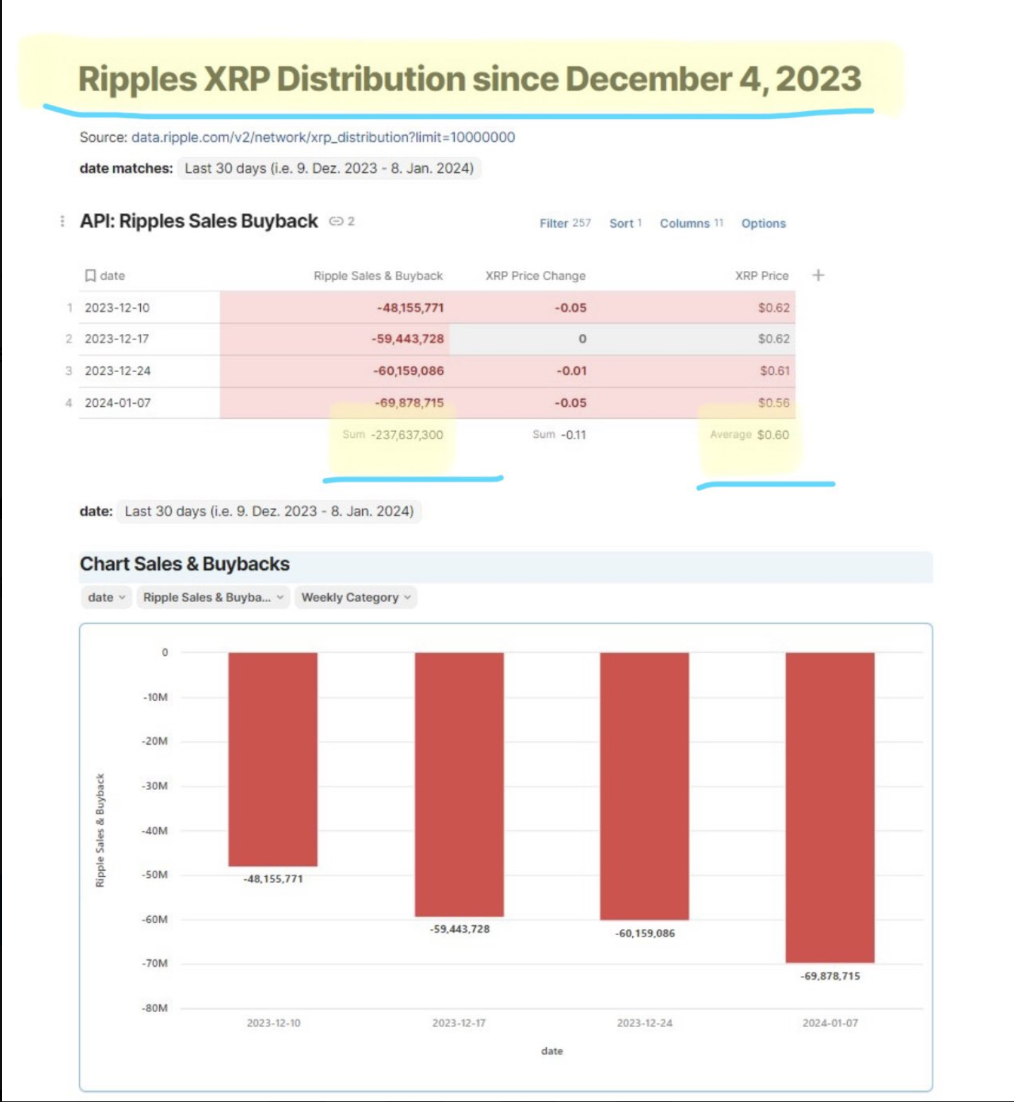 Las solicitudes de la SEC se producen mientras la empresa refuta las afirmaciones de que vendió XRP masivamente en diciembre. Un investigador con el alias X “3TGMCrypto” afirmó que Ripple vendió 327 millones de XRP, casi el triple de su cifra mensual habitual.
