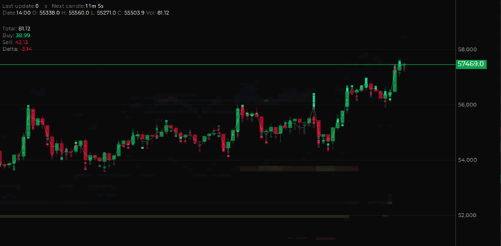 Por el momento no hay mucho movimiento por parte de las ballenas, que se mantiene aún con órdenes sobre los 52,000 dólares y otro par de órdenes sobre los 54,000 dólares y 57,500 dólares. Como podemos apreciar en la gráfica.