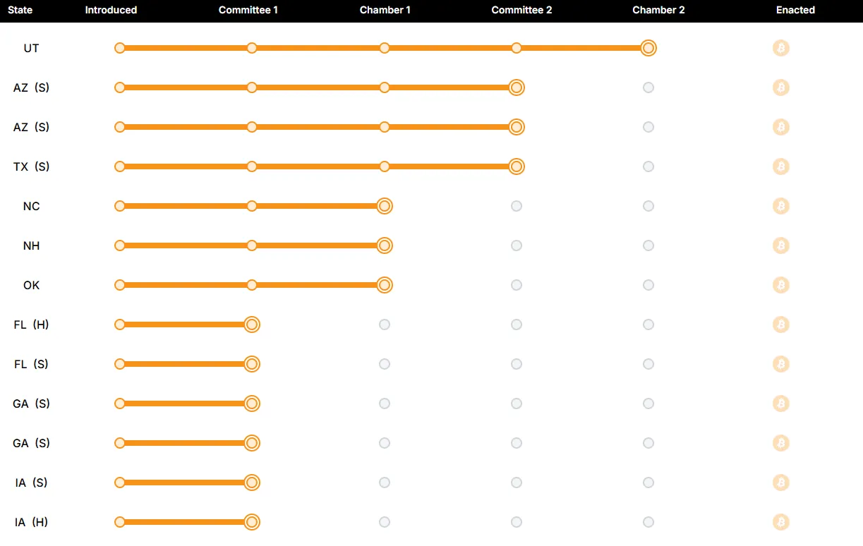 Varias otras propuestas de reservas a nivel estatal fracasaron debido a deserciones del Partido Republicano. En Texas, sin embargo, la mayoría de los demócratas votaron a favor. Este proyecto de ley aún no desencadena compras obligatorias de Bitcoin, lo cual fue un punto de fricción importante con los conservadores fiscales.