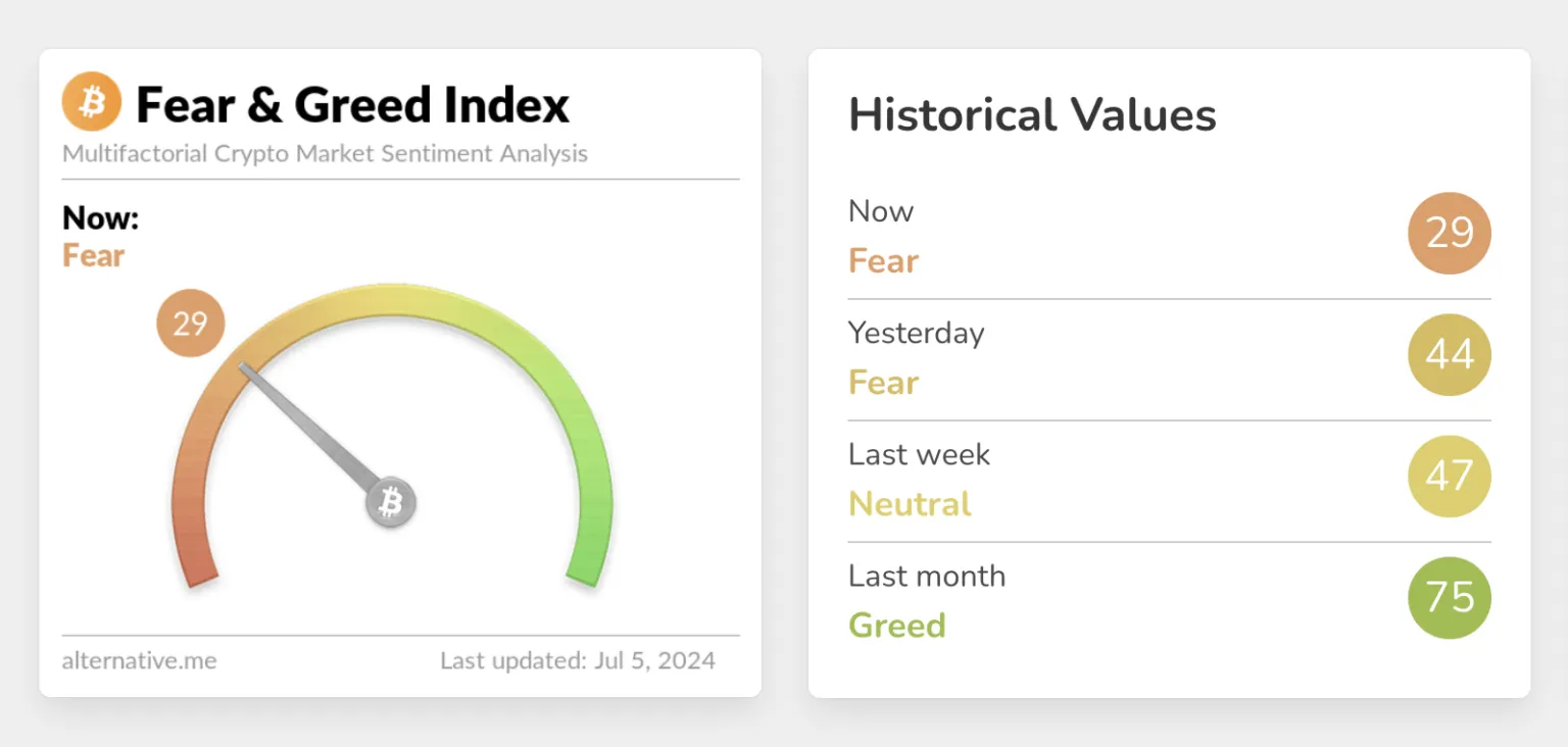 Actualmente, el índice de miedo y codicia es de 29 puntos y se encuentra en la zona de “miedo”.