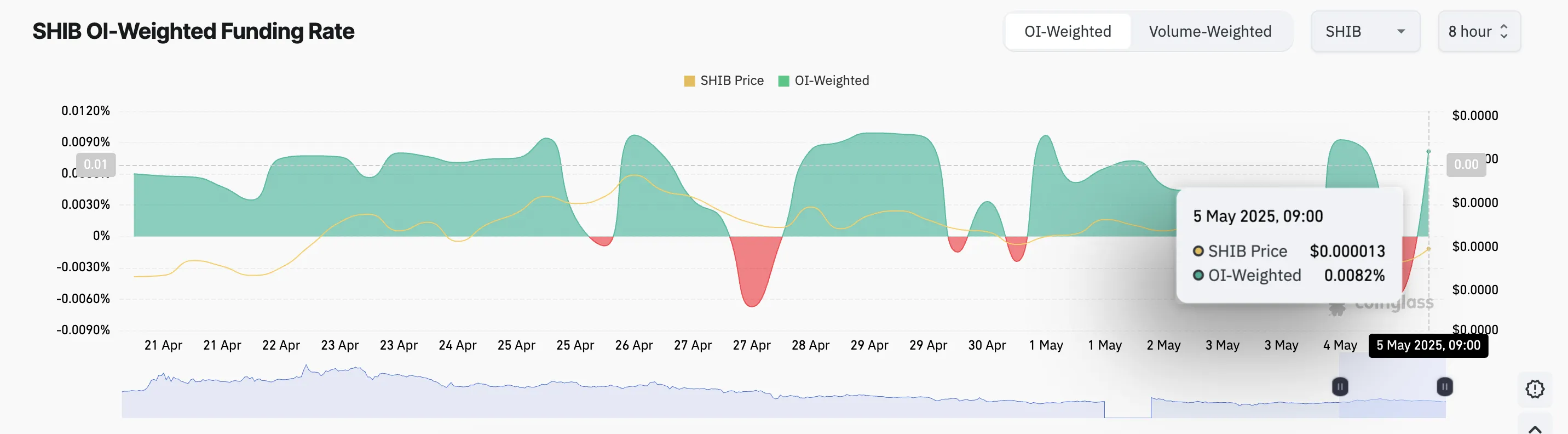 Cuando la tasa es positiva, los traders largos están pagando a los traders cortos. Esto indica que el sentimiento alcista es dominante entre los traders de futuros de SHIB, ya que la demanda de posiciones largas es mayor.