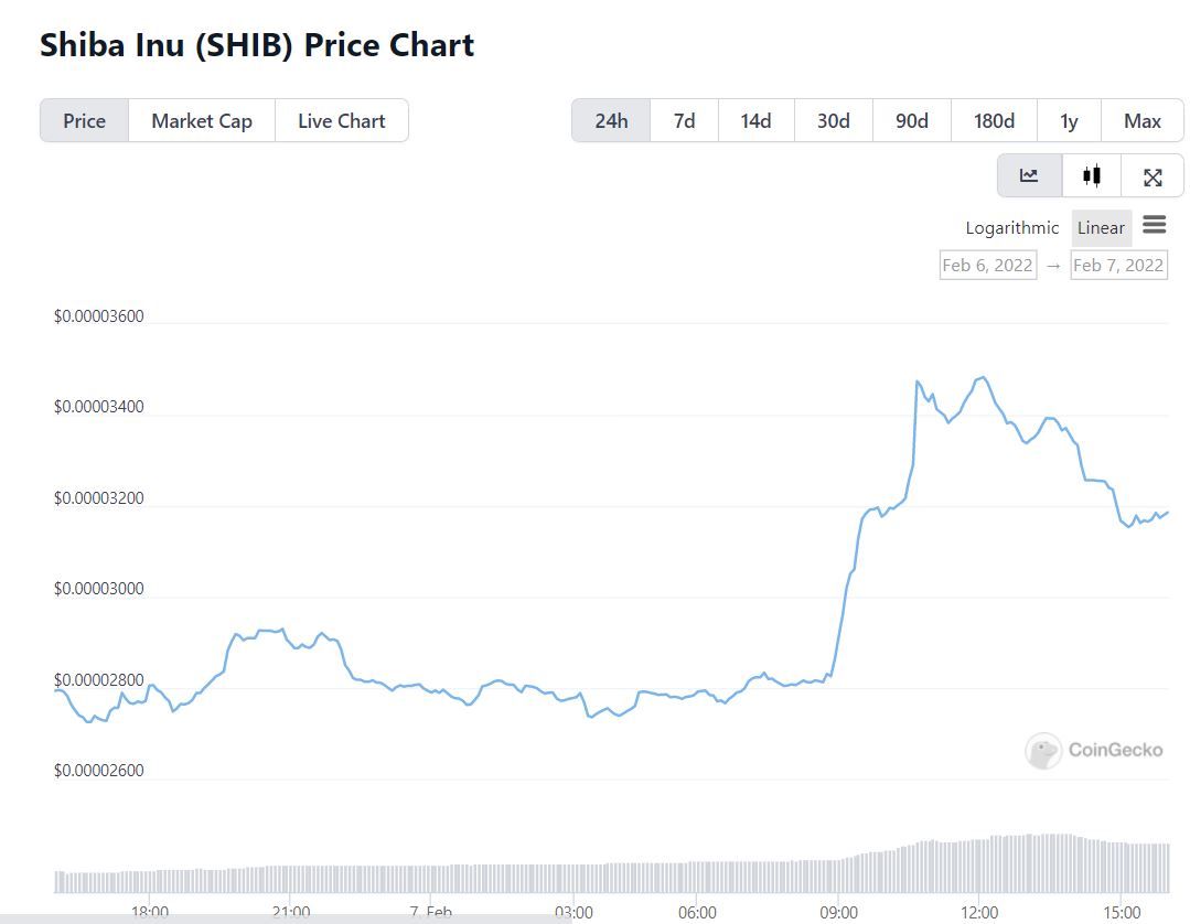 Como lo señaló el perfil @WatcherGuru el 7 de febrero, Shiba Inu se disparó hasta un 50% en las últimas 24 horas, volviendo a un valor de mercado superior a los US$ 19 mil millones.