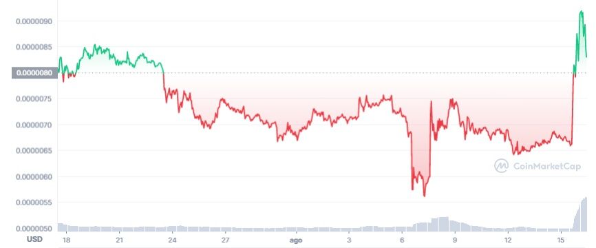 Al momento de la publicación, el token SHIB ha retrocedido un poco, y cotiza actualmente en 0.000008333 dólares, representando un crecimiento del 25% en las últimas 24 horas, pero aún se encuentra un 78% por debajo de su ATH, según los datos de CoinMarketCap.
