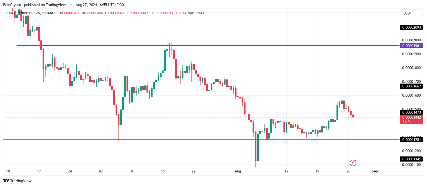 Considerando los factores mencionados, el precio de Shiba Inu podría cerrar por encima de 0.00001473 dólares. Este nivel es un piso de soporte importante y podría permitir recuperaciones más rápidas para la memecoin que cotiza a 0.00001442 dólares.
