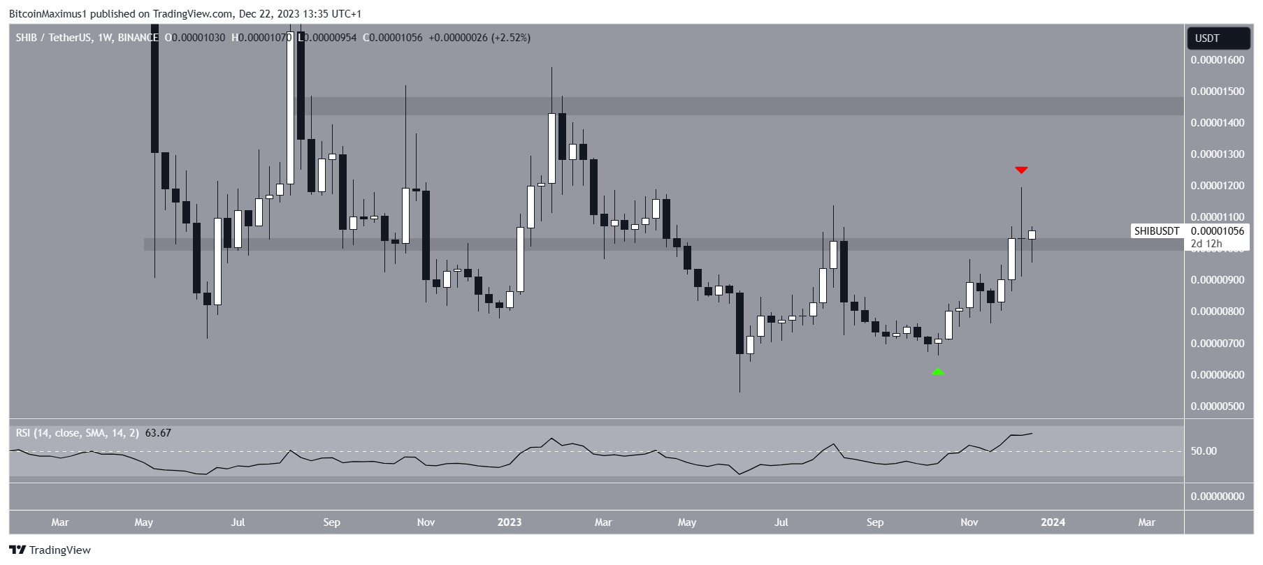 Esto llevó a SHIB de nuevo a la zona horizontal, que ha actuado intermitentemente como soporte y resistencia desde mayo de 2022.