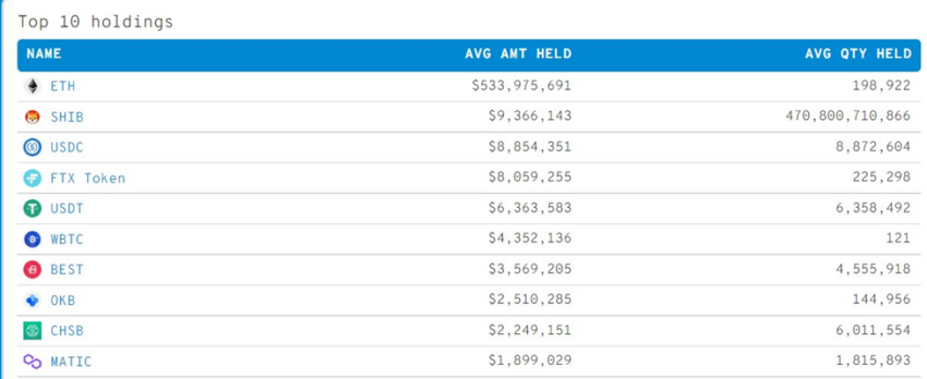 Además de SHIB, otros activos importantes en poder del top 100 monederos incluyen, entre otros, USD Coin (USDC), FTX Token (FTT), Tether (USDT), Wrapped Bitcoin (WBTC) y Polygon (MATIC).