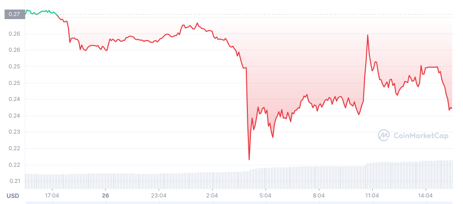Por su parte Dogecoin (DOGE) no ha tenido un rendimiento positivo al igual que el resto del mercado cripto. La criptomoneda meme más antigua del mundo cotiza en 0.2424 dólares, lo que representa una caída del 11% en las últimas 24 horas.