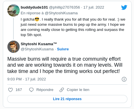 De hecho, según el desarrollador, es necesario que la comunidad haga más contribuciones y realice múltiples esfuerzos para acelerar la quema de tokens y llevar el proyecto a un nivel superior.