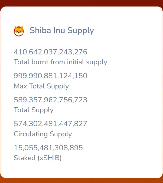 Las quemaduras en las últimas semanas han provocado una ligera disminución en el suministro de SHIB, aunque todavía está por encima de los 589,3 billones de tokens.