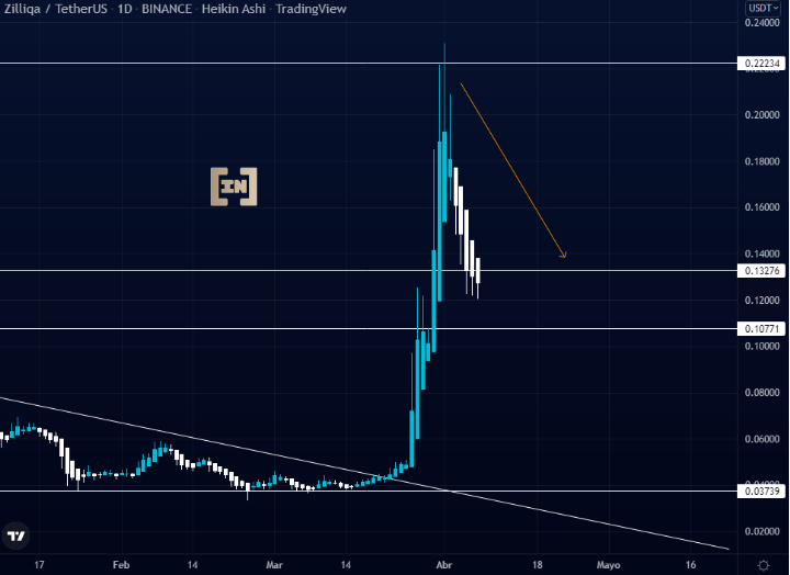 Zilliqa cae un 47.53% en su cotización tras su último impulso alcista del 1 de abril de 2022.