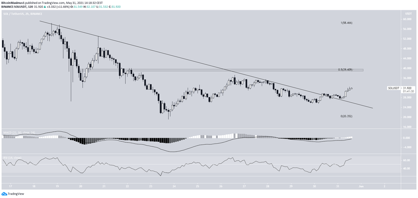 Además, SOL ha superado una línea de resistencia descendente, lo que implica que la tendencia se está volviendo alcista. Además, el RSI ha superado los 50 puntos (icono verde).