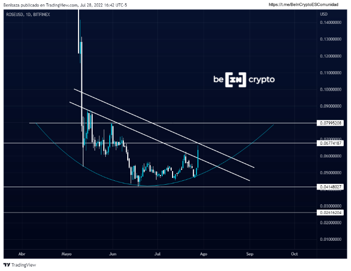 El canal lateral formando entre los 0.067 dólares y 0.041 dólares indica acumulación en la cotización de ROSE.