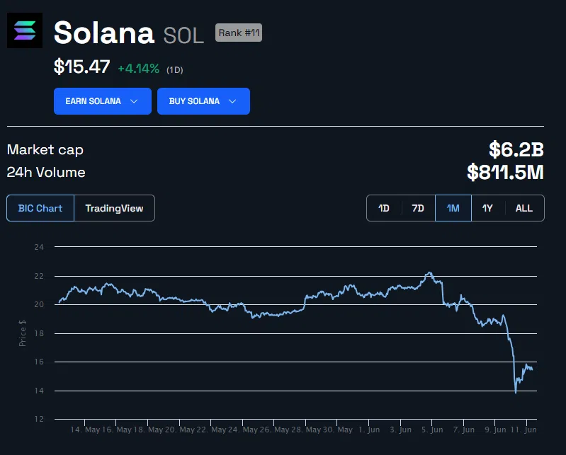 Mientras tanto, la nueva condena ha ayudado a SOL a subir más de 4% en las últimas 24 horas a 15,47 dólares al cierre de esta edición, según datos de BeInCrypto. Sin embargo, su precio ha bajado más del 20% en la métrica de siete días después de que Robinhood lo eliminó de la lista y varias ballenas lo abandonaron.