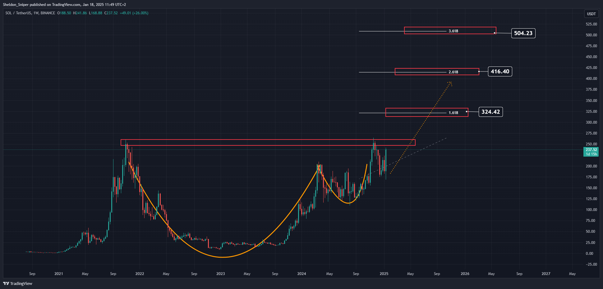 “Una vez que rompamos el máximo [histórico], aquí hay un par de objetivos. Personalmente, creo que $SOL puede alcanzar la marca de $500-$600 (quizás incluso más) en el próximo rally. Sin embargo, en cada zona tomaré algunas ganancias”, resaltó Sheldon The Sniper.