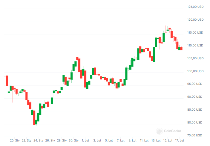 Actualmente, el precio de Solana se mantiene entre 110 y 120 dólares, lo que puede parecer bajo en comparación con otras criptomonedas populares como Ethereum (ETH).