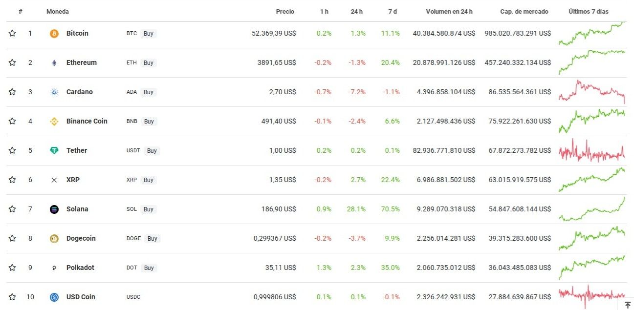 Una de las criptomonedas con mejor rendimiento durante el último día por un margen claro es el token SOL de Solana, ya que ha superado los 50 mil millones de dólares en capitalización de mercado.