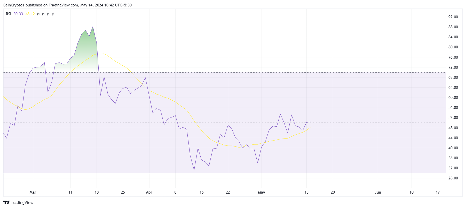 Se observa la presencia del indicador por encima de la línea neutral en 50.0, y el test de este nivel como soporte confirmaría la tendencia alcista. Esto ayudaría a SOL a observar y continuar cualquier recuperación que se inicie en los próximos días.