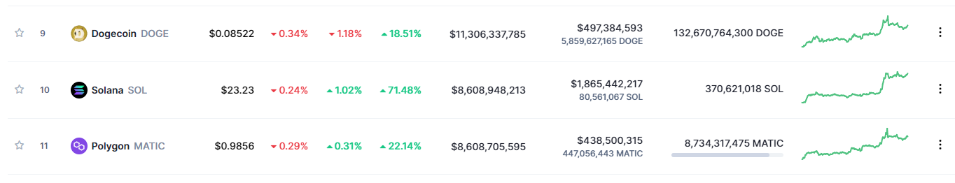 Pero su desempeño masivo de precios en las últimas dos semanas ha aumentado su valor a 23.23 dólares en el momento de la publicación. El impresionante rally también lo vio volver a ingresar a los 10 principales activos digitales por capitalización de mercado.