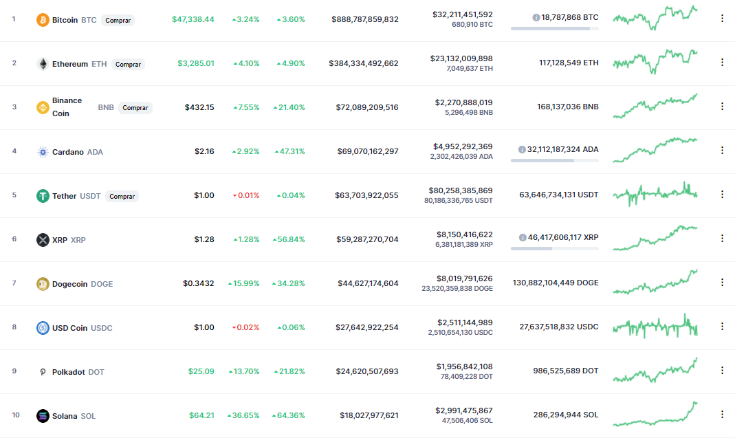 De esta forma, Solana ha registrado el mayor crecimiento dentro del top 10 criptomonedas por capitalización de mercado.