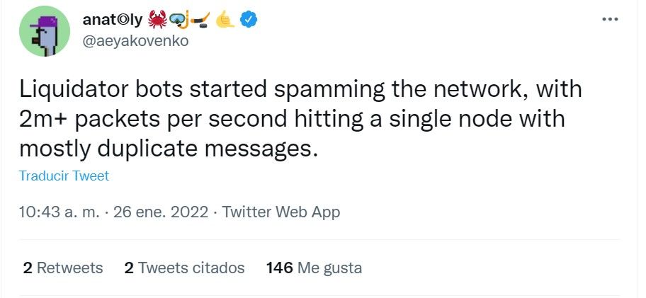 Antes de cerrar el tema hay que aclarar que, Yakovenko participó el 26 de enero en un spaces en Twitter en donde aseguró que él no considera que este ataque venga de alguien que quiere perjudicar a la red, sino de sistemas que se activan a través de algoritmos.